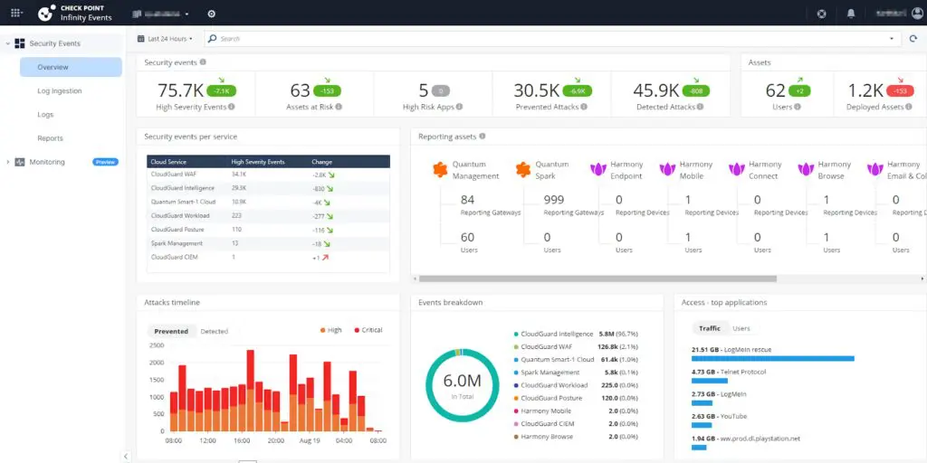 - Automated threat response: Relies on AI and AIOps to predict firewall health, help prevent outages, and automate responses to threats.