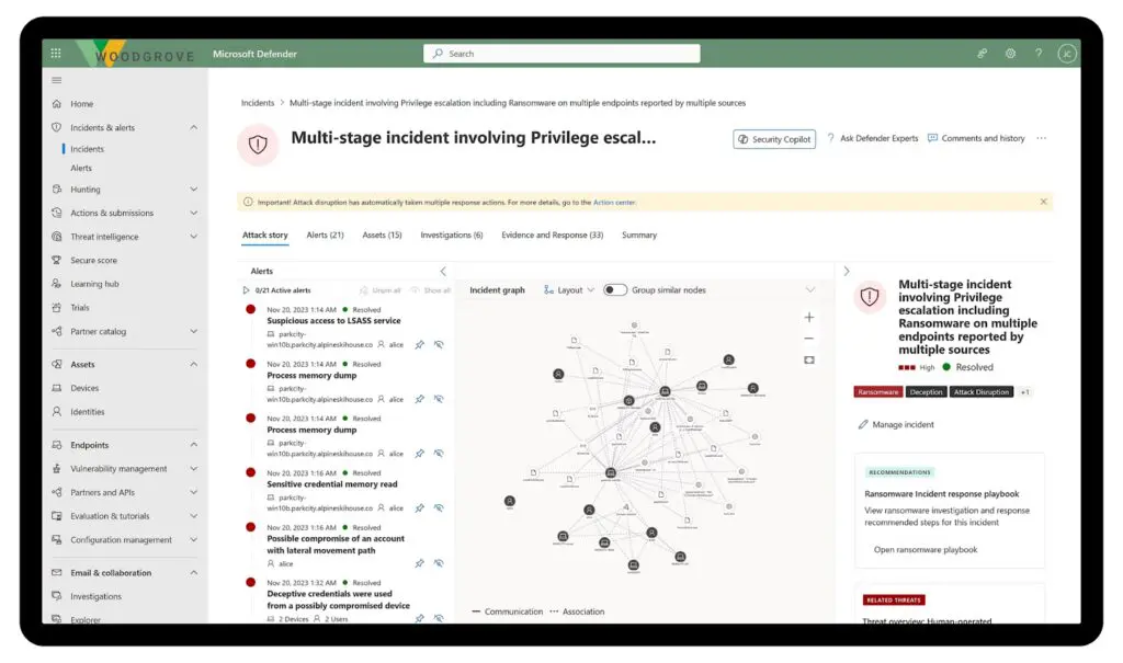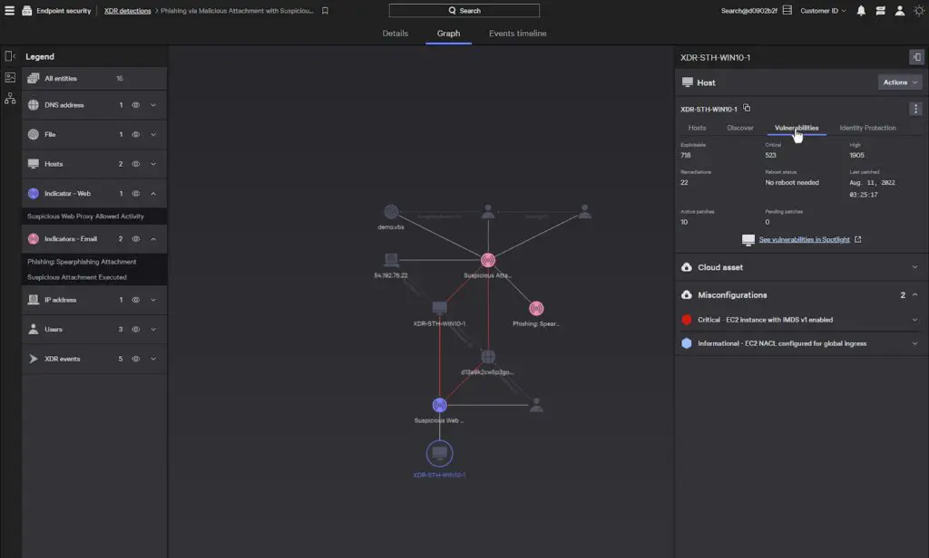 - الكشف عن النقاط النهائية والاستجابة (EDR): يمكّن فرق الأمان من التحقيق، التحليل، والاستجابة للأنشطة المشبوهة مع أولوية مدفوعة بالذكاء الاصطناعي.